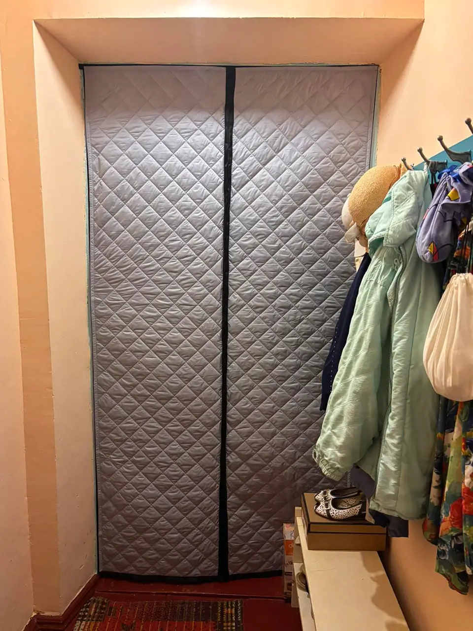 - Утепление дверей на зиму глобальный вопрос, если ваша дверь промерзает, из неё дует, или от неё идёт холод — она явно нуждается в замене или капитальном ремонте, это займёт от 400 долларов. Закрывая такую дверь утеплённой шторой вы в целом решаете проблему экономя до 90% на ремонте и утеплении.