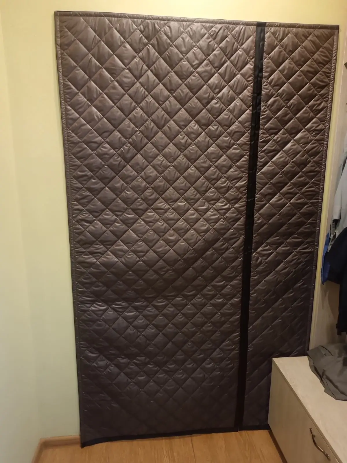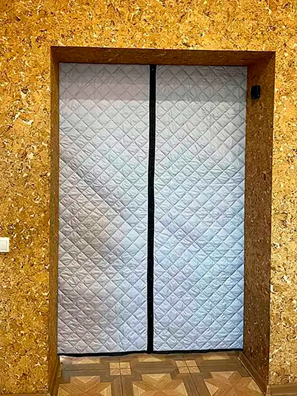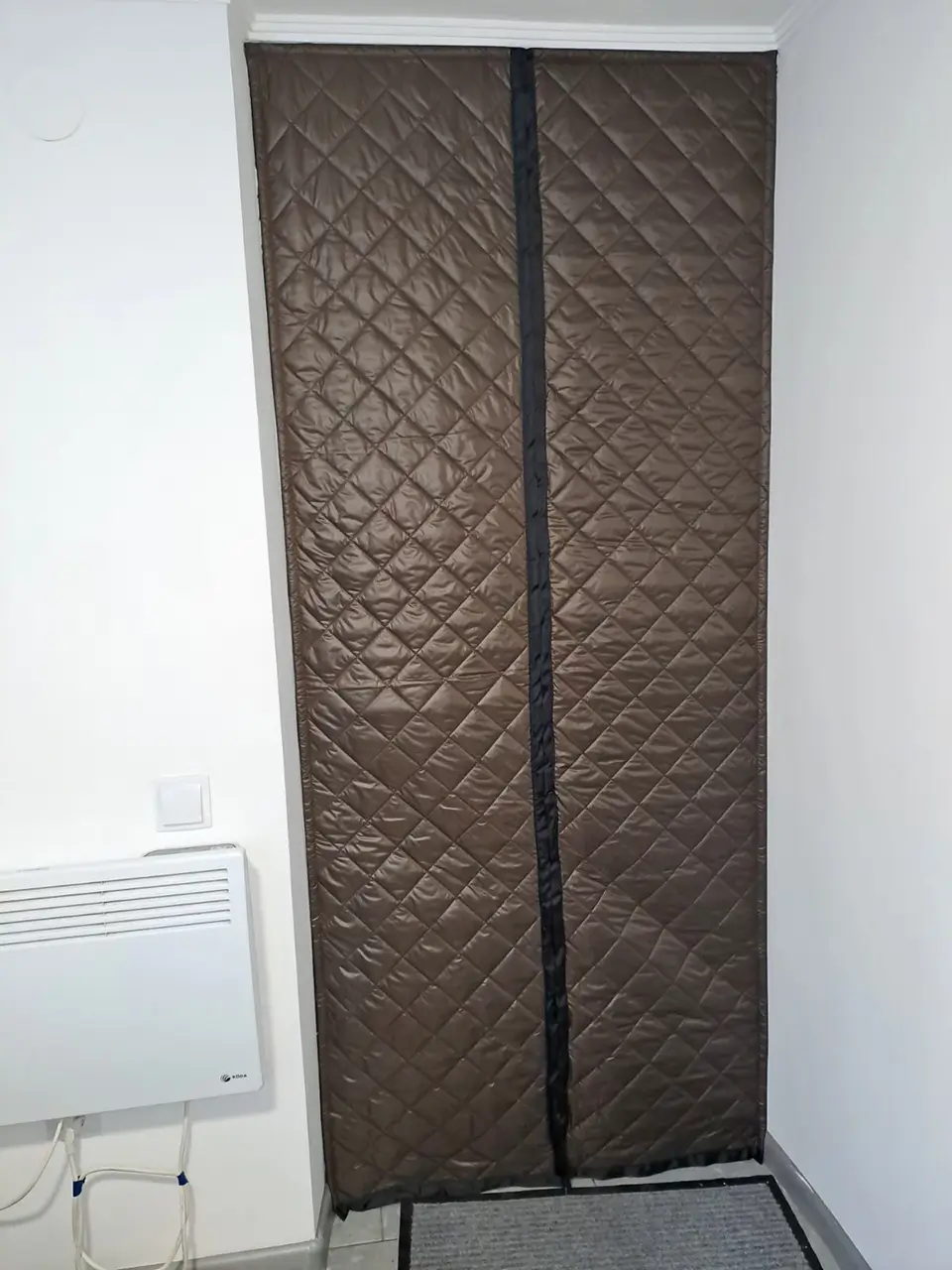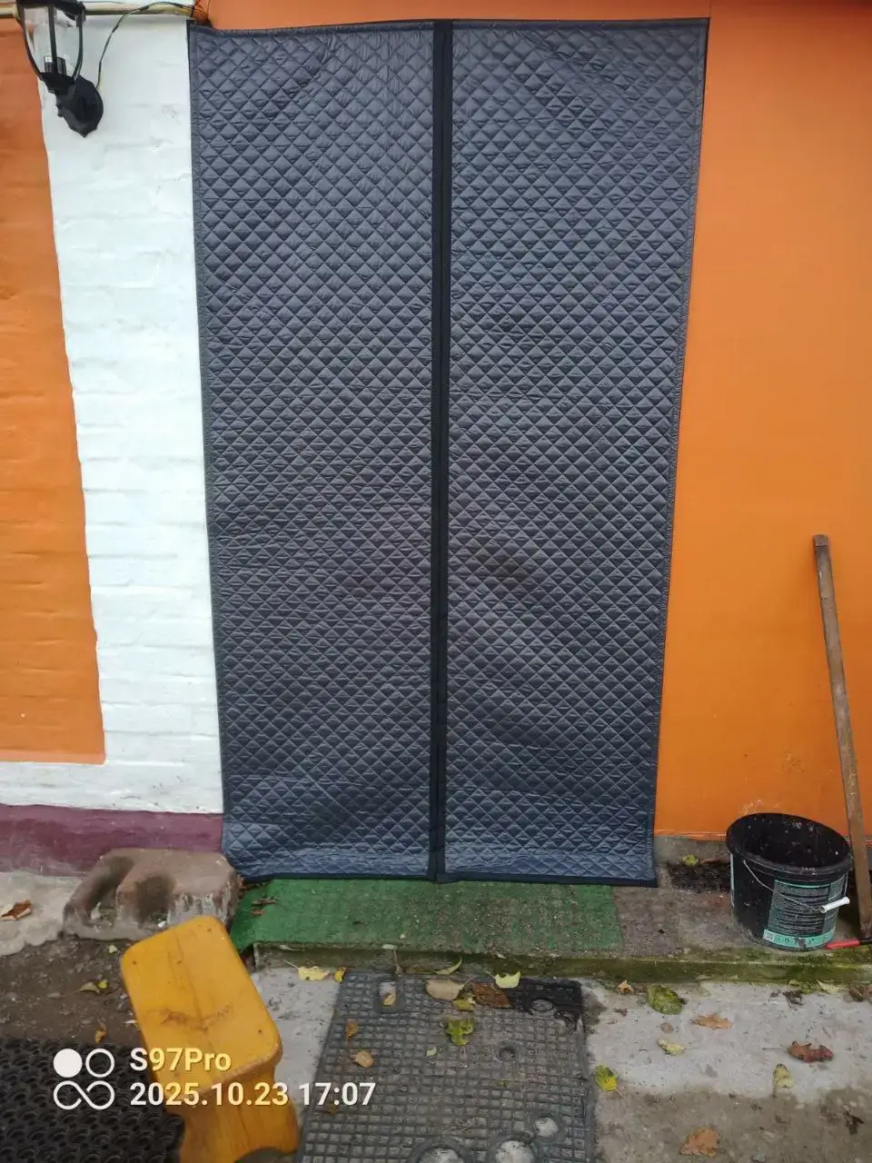 - За счёт плотного полотна магнитной шторки и отсечённого воздуха между ней и дверью автоматически создаётся дополнительный звукобарьер. Дверная или оконная штора глушит звуки с улицы и это не маловажный фактор для любого жилища. Считаю это немаловажный бонус к теплозащите.