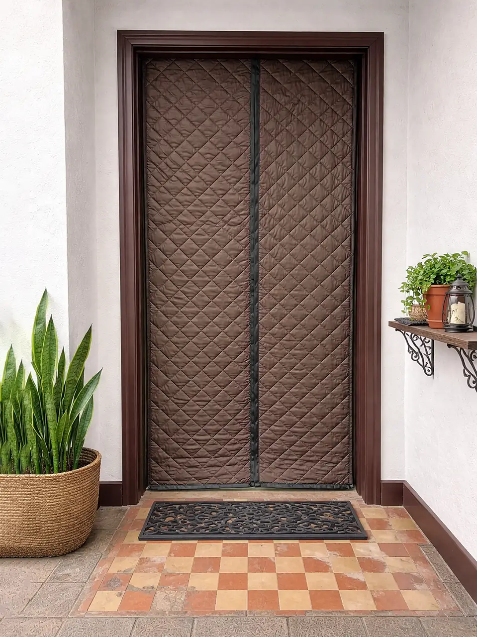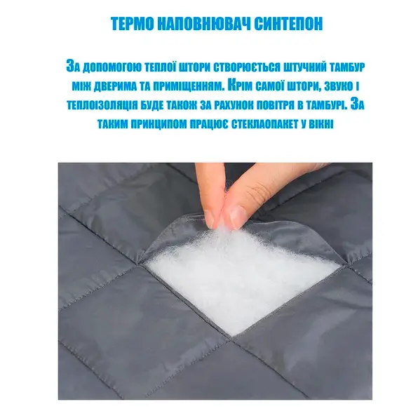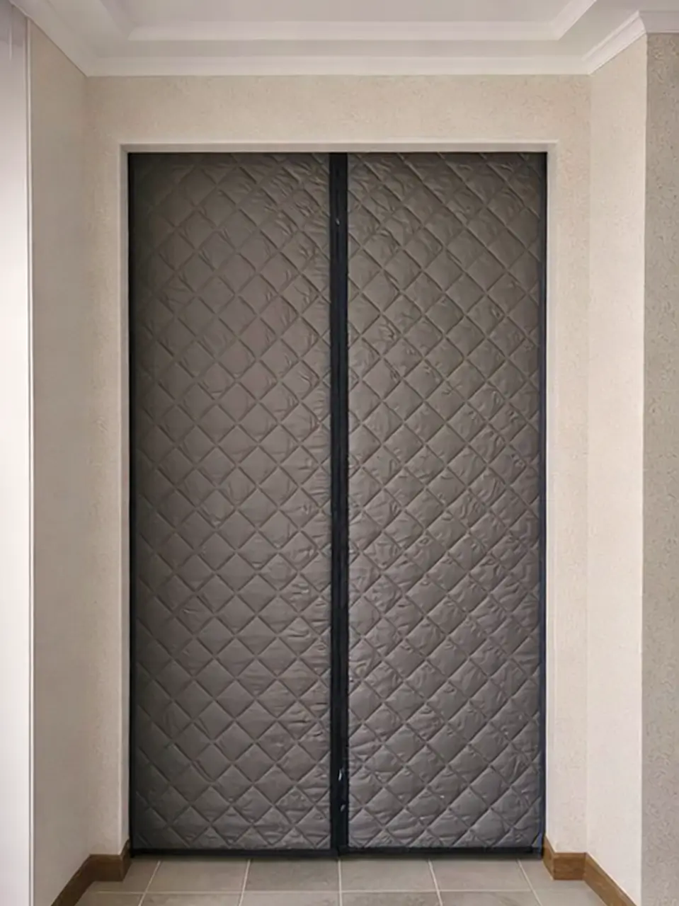 Теплозащитная шторка для дверей на магнитах – альтернатива второй двери, которая защищает от холода, ветра, сквозняков, влаги и насекомых. Тёплая штора с двух сторон сделана из ветрозащитного и водоотталкивающего материала, а вовнутрь вшит утеплитель синтепон. Цвет материала можно выбрать из каталога. Штора от холода создаёт искусственный тамбур, создавая дополнительную тепло- и звуко- защиту помещения. Тамбур эффективен тем, что когда входная дверь открывается тёплый воздух не выходит, а холодный не заходит, благодаря теплошторе. Таким образом вы имеете двойную защиту от потери тепла.