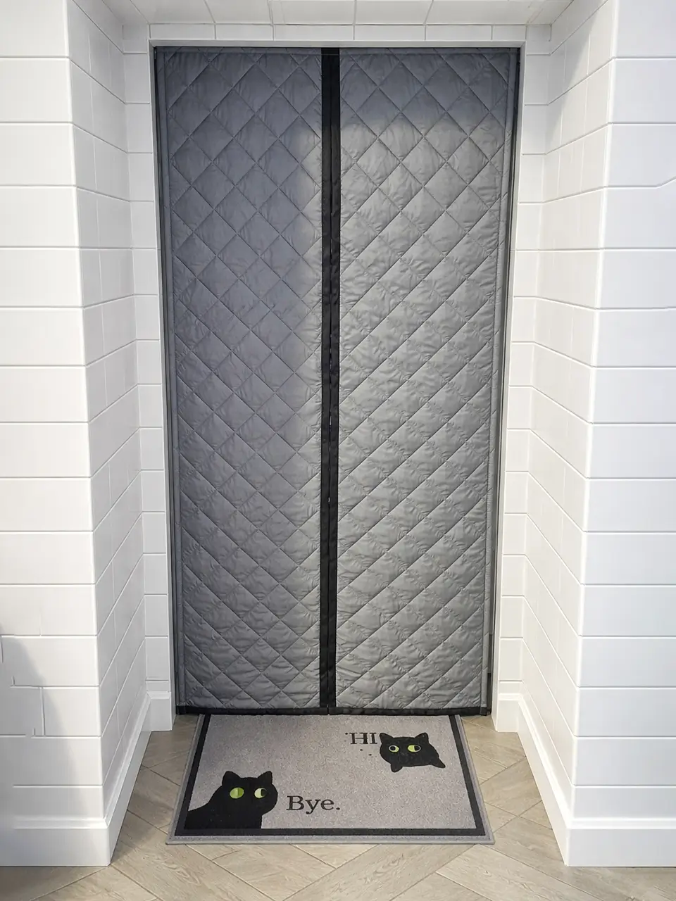 - В частных домах выход на улицу более частый случай чем в квартире, при каждом открытии мгновенно тепло из помещения выходит на улицу, а холодный воздух заходит внутрь. Единственный выход — тамбур. Это дорогое решение и не всегда возможное. Повесив магнитную штору на проём вы можете создать бюджетную защиту от сквозняков, не устанавливая вторую дверь. Напоминаем, материал нашей шторы ветронепродуваемый.